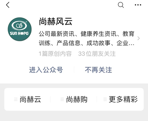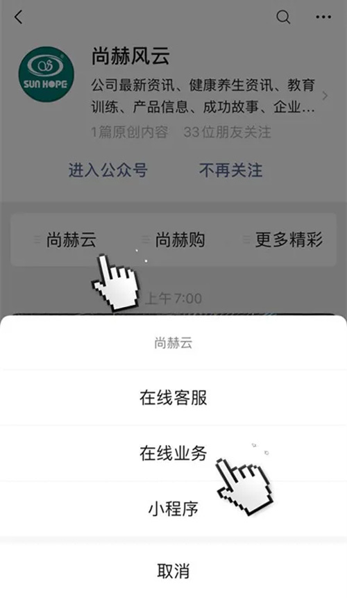 1、关注尚赫风云公众号