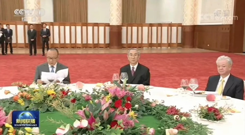 新华社北京9月27日电 全国政协办公厅、中共中央统战部、国务院侨办、国务院港澳办、国务院台办、中国侨联27日在人民大会堂联合举行国庆招待会。中共中央政治局常委、全国政协主席汪洋出席并致辞。