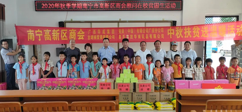 9月22日,完美广西分公司党支部携手南宁高新商会到上林三里镇和高仁小学开展慰问贫困户及留守儿童活动。