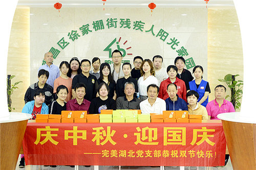 9月28日上午,正值中秋、国庆双节来临之际,完美湖北分公司党支部在完美公司总部党委的引领下,携手辖区党建办,再次走访公司隶属辖区——徐家棚街残疾人阳光家园,为托养学员提前送去爱心月饼和节日祝福。