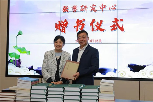 张謇研究中心干事会会长张小平向安惠公司董事长陈惠赠送了《张謇全集》《张謇纪录片》《张謇研究年刊》等书籍和视频资料,鼓励安惠人传承并发扬张謇先生爱国的情怀,实干的精神,开放的视野和系统的实践,做好自己,做好企业。