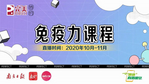 当前,全球新冠疫情仍在持续,存在诸多变数,秋冬也面临疫情卷土重来的风险。2020年10-11月,完美公司再次携手南方日报、南方+,推出“健康+直播”《免疫力课程》第二季(共五期),将对大众的生活习惯和行为,从免疫力角度进行解读和科普,带大家重新认识防疫常态化下的健康生活方式。