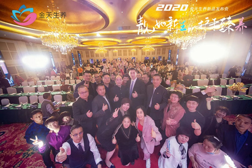 出席本次发布会的领导有金天国际集团副总裁、金天生养总裁、金天国际统筹发展委员会总裁祖威,金天生养营销中心副总经理、金天国际统筹发展委员会副秘书长陈肖徽,金天生养电商中心总经理金平,金天国际统筹发展委员会市场总裁樊保宏,金天国际统筹发展委员会首席激励官李刚,金天国际统筹发展委员会营运总裁沈国锋,金天国际统筹发展委员会首席直播官许吉,金天国际统筹发展委员会商务总裁潘泓昌,金天国际生态保养商学院院长何浩民,金天生养营销中心市场总监谷喜生、张兆源、徐继强,现场同时汇聚了金天生养500余名精英代表。