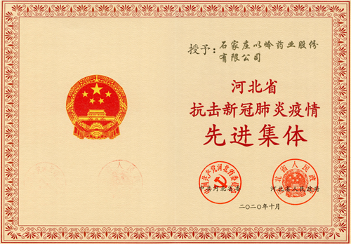 2020年10月16日,河北省抗击新冠肺炎疫情表彰大会在河北会堂隆重召开,石家庄以岭药业股份有限公司被中共河北省委、河北省人民政府授予“河北省抗击新冠肺炎疫情先进集体”。