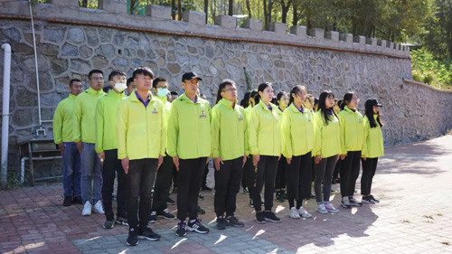 伴随着清晨的朝阳,威海紫光前往鸣翠山庄天狼拓展训练基地的大巴车就出发了,为期一天的拓展训练拉开帷幕。