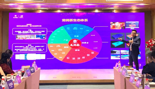 许耀南总裁上台发表讲话,对龙润茶十五年进行回望总结,重点阐述了龙润茶如何从模式、产品、营销、渠道、品牌实现升级。未来,龙润茶将以强大的供应链、多属性的优质产品、完善先进商业模式、多元化的消费场景、专业高效的服务,打造企业生态体系。许耀南总裁对市场进行了详细生动的分析演讲,围绕着全年销售业绩、同比增长率、热品销售数据、市场促销方案等内容,多方面、多层次地对龙润茶2020年市场进行了深刻总结。