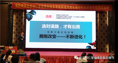 中部区域负责人魏毅先生详细分析了同仁堂健康新服务零售平台以及成为平台会员的优势。