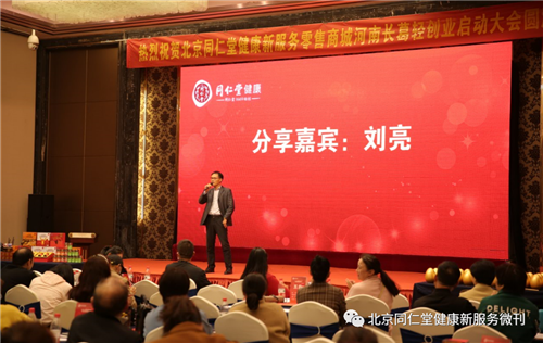 接下来,同仁堂健康服务商刘亮先生分享了作为一位已有事业基础的博士,选择同仁堂健康新服务零售平台的理由。