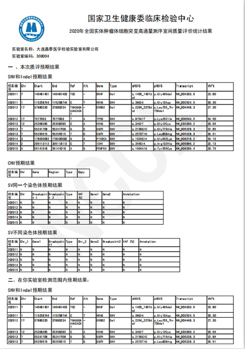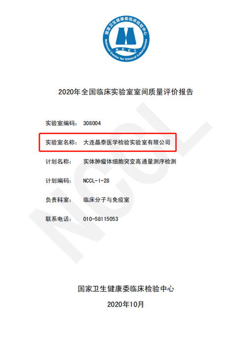 近日,国家卫生健康委临床检验中心(NCCL)公布了《2020年全国实体肿瘤体细胞突变高通量测序室间质量评价》统计结果,晶泰医学再次以满分佳绩通过!这标志着晶泰医学的检测能力和质量管理再次获得国家权威机构的认可!