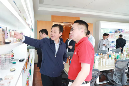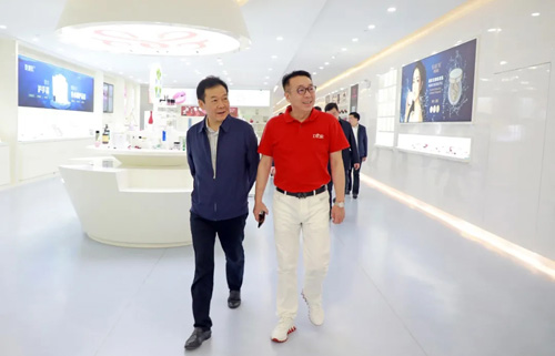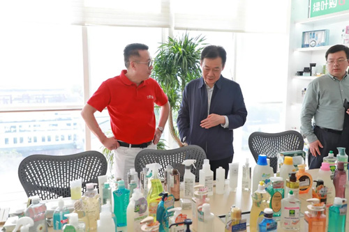 在绿叶购产品展示厅中,潘建华副市长一行仔细翻看了数千款琳琅满目的特色产品,徐建成董事长向潘建华副市长详细介绍了近期在全力筹备的绿叶购连锁超市项目。徐董表示,绿叶专注百姓生活必需品20年,拥有33.67亿元的品牌价值和过亿的粉丝群体,以绿叶强大的科研与供应链实力为后盾,绿叶购致力于以“低价、优质、刚需”的产品定位打造国潮爆品,推出SKU总量超10000个的各类百姓生活快消品,以全新焕发出民族日化品牌绿叶的时代新活力。