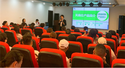 天美仕培训部文瑾老师分享天美仕产品理念,同时介绍天美仕明星产品,市场伙伴现场体验。