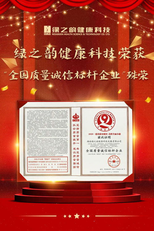 绿之韵再度荣获“全国质量诚信标杆企业”称号