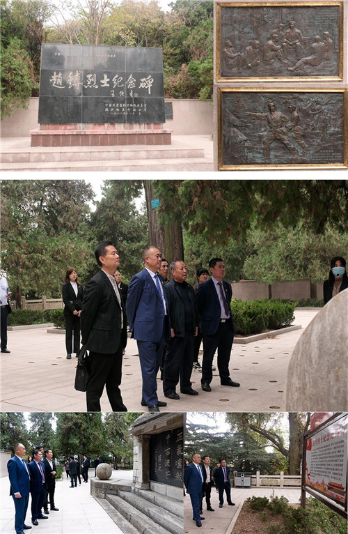山脚下陵园中心处建有革命烈士纪念堂,系9间民族形式的砖瓦建筑,堂内悬挂烈士谱,记载着3340位烈士英名。纪念堂后面是烈士墓区,安葬着2946位烈士遗骨。在纪念堂展厅内,全体党员重温当年入党时的决心和信念。一个个熟悉的英烈名字,一幅幅珍贵的革命照片,一件件斑驳的历史实物,将党员们置身于战争年代先烈们英勇奋战、投身报国的场景中。最后,全体党员来到赵镈烈士纪念碑,在烈士纪念碑前,向革命烈士默哀致敬,感受英烈当年的正气凌然。重温一幕幕伟人在这片土地上波澜壮阔的征程,感念其丰功伟绩和崇高风范,并在心灵上一阵阵强烈的震撼之中,坚定革命理想信念,不断汲取前行的力量。