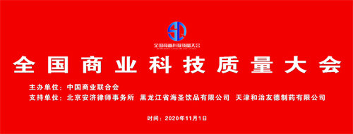 2020年11月1日,以“科技创新助力实体经济、诚信兴商铸就质量体系”为主题的2020年全国商业科技质量大会在北京召开。国内贸易部原副部长何济海、商务部原副部长张志刚、中国商业联合会会长姜明、副会长傅龙成、监事长田莉、科技部中国科学技术发展战略研究院副院长孙福全等领导出席大会。天津和治友德制药有限公司作为大会支持单位受邀参加本次活动,并荣获“2020全国商业质量奖”。