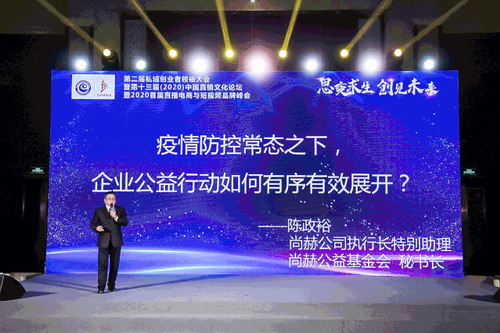 尚赫公司执行长特别助理、尚赫公益基金会秘书长陈政裕代表尚赫出席论坛,并发表《疫情防控常态之下,企业公益行动如何有序有效展开?》主题演讲。