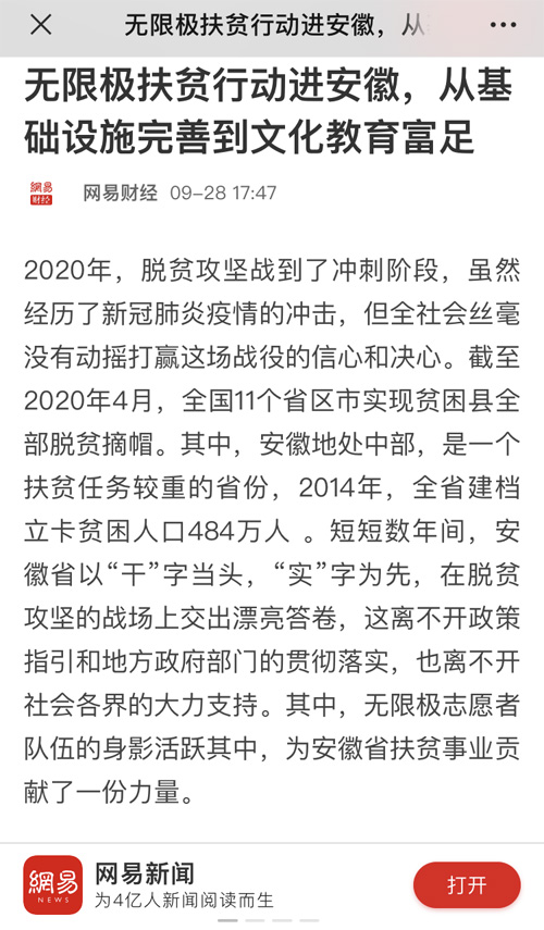 网易财经丨无限极扶贫行动进安徽 贡献力量