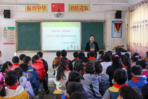 ▲关爱留守儿童心理健康教育讲座