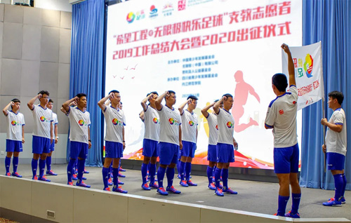 ▲2020无限极快乐足球志愿者在出征仪式上宣誓