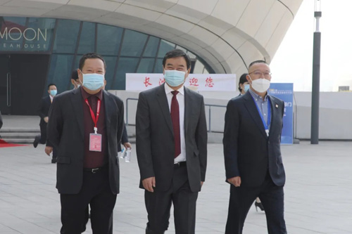 胡国安董事长与湖南省人民政府副省长何报翔(中)亲切交流