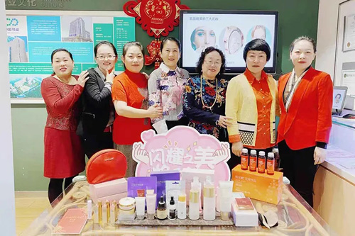 新时代人代表给大家带来《皮肤美白养护》的精彩分享,通过护肤手法演示,让大家体验公司产品的魅力。