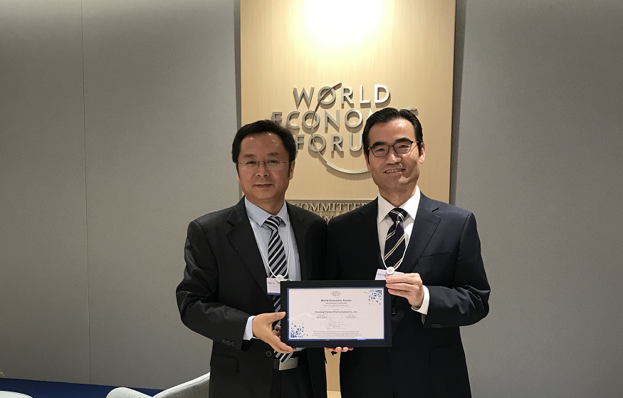 本次论坛上,主办方为品牌提质升级后的天津和治友德制药有限公司颁发了新的“世界经济论坛新领军企业”证书。
