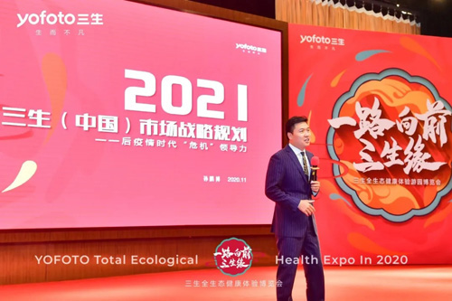 博览会在热烈的氛围中拉开帷幕,黄金宝董事长首先致欢迎词,他对三生家人的到来表示热烈欢迎。他说道,今年的年会之所以策划为特别的游园博览会形式,主要是为了三生伙伴的安康,同时他也希望伙伴们在游园的过程中能更好地了解三生产品和文化,在三生事业平台获得更好更快的成长。