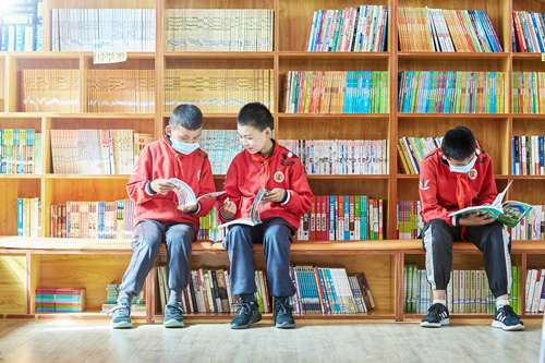 ▲孩子们在学校图书馆阅读