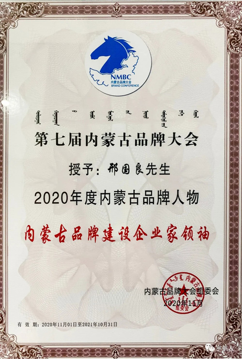 宇航人公司董事长邢国良再次被评为内蒙古品牌建设企业家领袖。