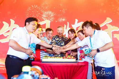 男神许国伟副董事长深情弹唱《甜蜜蜜》、《世界第一等》、《爱拼才会赢》等歌曲将晚宴推向高潮。