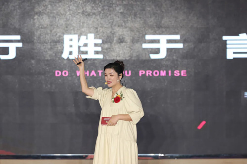 康满家新营销副总经理李籽颐女士,为我们带来了《实干兑现诺言》的主题演讲。每次大会,她都是最动情的一个,两年前康知秀以一个大家闺秀的姿态展示在世人的面前;这两年来,历经了风雨和历练,不断的自我完善和迭代,已经成为了一个干练、沉稳,洋溢着青春气息的护肤品品牌。这两年的成长,是她未来沉淀价值的资本。