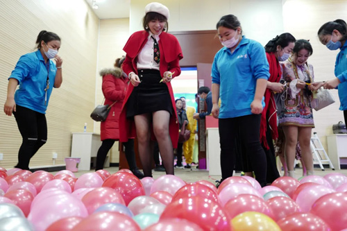 会议入场,每位家人参与了踩气球中大奖的环节,人人参与、人人有奖。