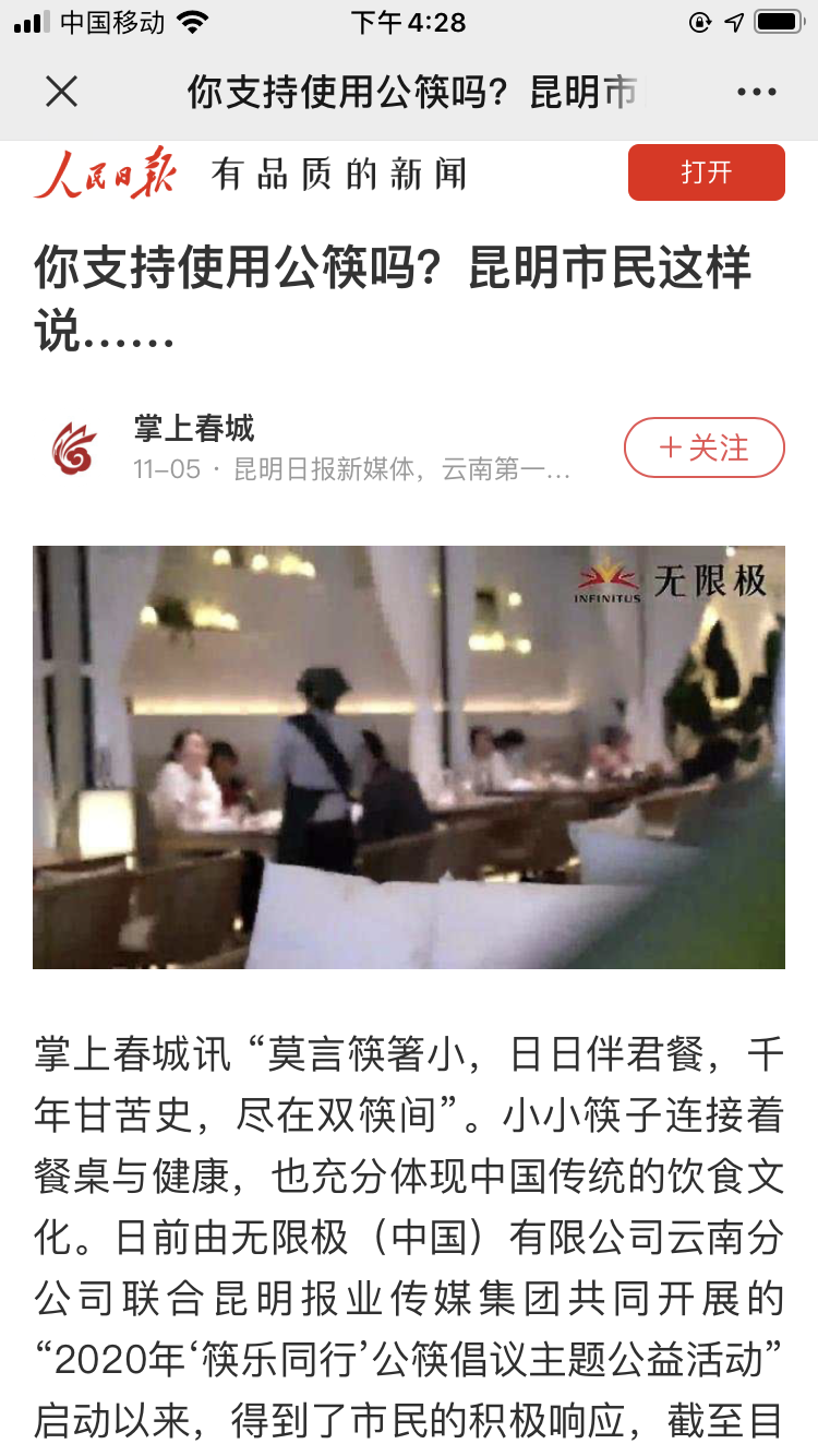 不久之前,无限极(中国)有限公司云南分公司携手昆明报业传媒集团,共同开展了“2020年‘筷乐同行’公筷倡议主题公益活动”,助力让健康生活理念深入人心。活动启动以来,不到1个月时间已有近24万市民线上签名支持。《昆明日报》对此次活动进行了报道。