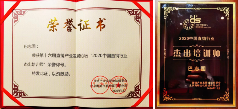 “2020中国直销行业杰出培训师”