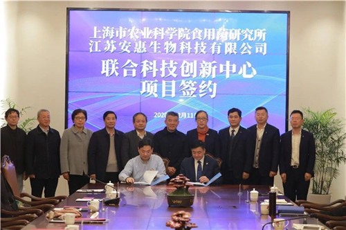 座谈会上,安惠公司董事长陈惠,上海农科院食用菌研究所所长张劲松共同签订了成立联合科技创新中心的协议,标志双方将在研发平台、研发队伍、产品开发等领域开展更深度的合作。