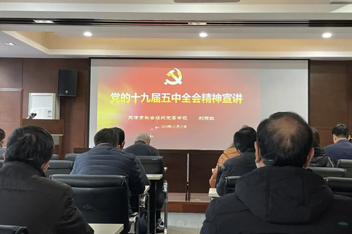 日前,为引导全市社会组织深入学习宣传贯彻落实党的十九届五中全会精神,天津市民政局组织60余家市属社会组织负责人集中学习,市民政局党组成员、副局长、市社会组织党委书记、社会组织管理局局长刘丽红作全会精神宣讲报告,并与社会组织负责人就宣讲内容进行互动交流。尚赫公益基金会代表参加宣讲活动。