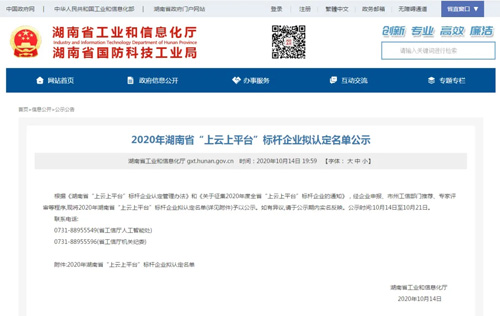 绿之韵获评2020湖南省上云上平台标杆企业