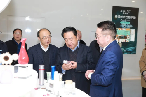 调研过程中,徐董向陈震宁副主任一行介绍了绿叶品牌创立19年、绿叶科技集团成立9周年的发展历程。2001年成立北京绿叶,在企业及品牌发展成为消卫药械行业前三甲后,2011年回到江苏成立绿叶科技集团,目前已建立完成五大研发中心,其中欧洲联合研发中心是与全球彩妆巨头意大利INTERCOS莹特丽集团(为LA MER海蓝之谜、La Prairie莱珀妮等一线品牌代工企业)联合成立,并合作研发推出了安瓶等深受万千女性喜爱的绿叶护肤精品。专注自身科研的同时,绿叶还与清华大学、北京大学、上海交通大学、浙江大学、江南大学等国内知名院校开展联合科研,持续推进日化领域高端精品的科技研发工作。