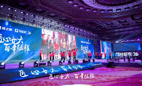 绿之韵集团董事、总裁劳嘉在讲话中首先代表集团公司董事会向各位家人的到来致以热烈的欢迎和绿之韵碧波庭26周年诚挚的问候。她表示:即将过去的2020年注定是不平凡的一年,受到疫情的影响,市场发展举步维艰。我们深刻地感受到个人、团队只有把自身发展融入碧波庭的血液、融入到集团公司和国家的命运,才能驾驭好市场、业绩长虹。疫情之下,通过不断的健康知识宣导,更多人有了长期健康的意识,这也意味着一种机会。今年是碧波庭创立的第26个年头,也是绿之韵牵手碧波庭的第10个年头。她向这10年中为绿之韵碧波庭的发展付出贡献的事业伙伴致以了崇高的敬意与衷心的感谢。她相信,在双方的共同努力下未来的绿之韵碧波庭将拥有更广阔的发展空间、更快的发展速度。希望家人们以26周年为新起点,用工匠之心做好产品,用荣耀之心追求事业,用感恩之心回馈社会,开始书写另一段更加辉煌的事业篇章。