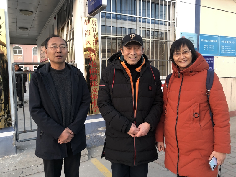 ▲天津市静海区唐官屯镇靳官屯尚赫张义荣小学只校长与秦永楠、耿昆夫妇合影
