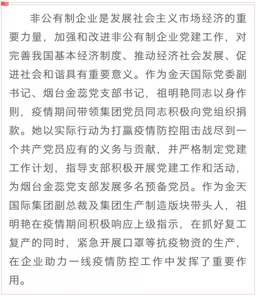 金天国际副总裁祖明艳荣获优秀支部书记表彰(2)