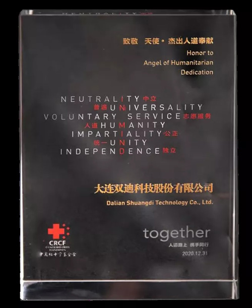 近日,双迪公司收到一份来自中国红十字基金会的特别致谢礼。为感谢双迪公司在2020年2月1日,向中国红十字基金会捐赠的价值300万元空气净化器,用于支持湖北地区疫情防控工作,中国红十字基金会特颁发此纪念牌,以作留念。