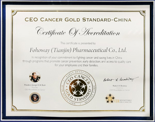 和治友德通过“CEO抗癌黄金标准”国际认证
