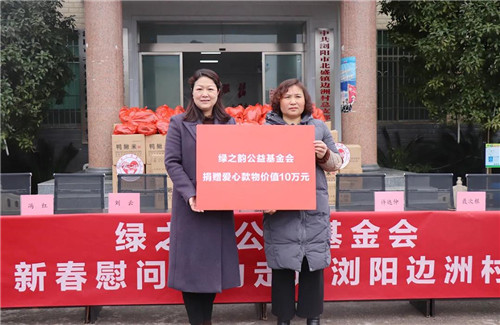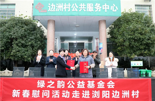 绿之韵向浏阳北盛镇边洲村捐赠爱心款物10万元