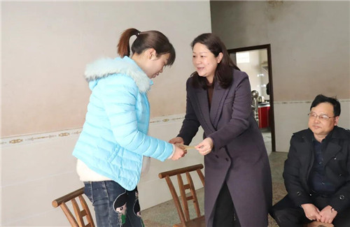 任惠老公患重病过世,她既要照顾家中七十八岁的爷爷,还要拉拔着两个上小学的儿子,生活给予了十分的艰难,但年轻的任慧却比想象中坚强得多。慰问组一行来到家中时,她张罗着让大家坐着喝茶,孩子们在旁边无忧无虑地玩耍。劳嘉理事长为她送上慰问金,鼓励她:生活的困难打不倒每一个坚强的母亲,孩子们就是未来的希望!任惠的笑容就像她的蓝色外套一样,为灰色的生活添上了一抹亮色!