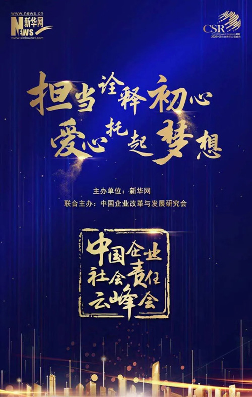 近日,由新华网主办、中国企业改革与发展研究会联合主办的“担当诠释初心 爱心托起梦想——2020中国企业社会责任云峰会”落下帷幕。