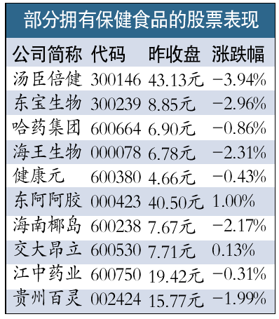 昨日国家药监局网站再次公布了13种假冒保健食品,而之前汤臣倍健被举报左旋肉碱片未列入生产许可证范围、安利卷入保健品批号过期疑云、东宝生物胶原蛋白涉违规宣传……今年以来保健食品行业很不平静,之前颇被机构、游资看好的保健食品板块近日也连番下挫,十大主要保健食品股昨日有八只出现不同程度下跌。“虽然"黑天鹅"不断,但整顿改善后,市场远景依然还是看好的。”分析称。