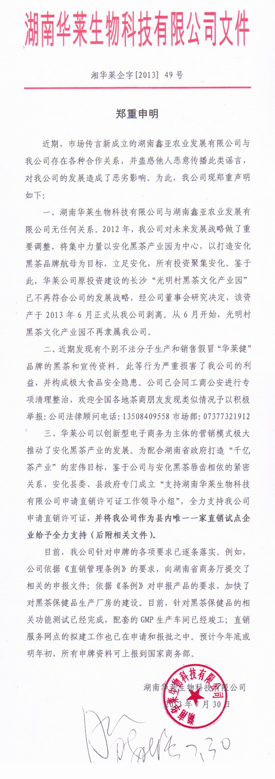 - 华莱严正声明与鑫亚无任何关系 “内部商议”属
