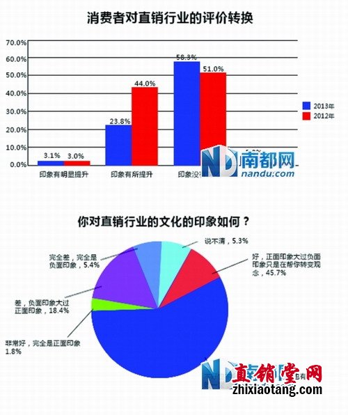 摘要:日前,直销研究咨询机构九方马管理顾问机构联合数家媒体,共同发布了《2013年中国直销行业社会形象研究报告》。据调查,中国直销行业公众形象总印象为58 .8分,较之以往有明显提升,但离及格线仍差一步;而对直销持正面印象和负面印象的被访者旗鼓相当,分别占15 .7%和16 .6%。