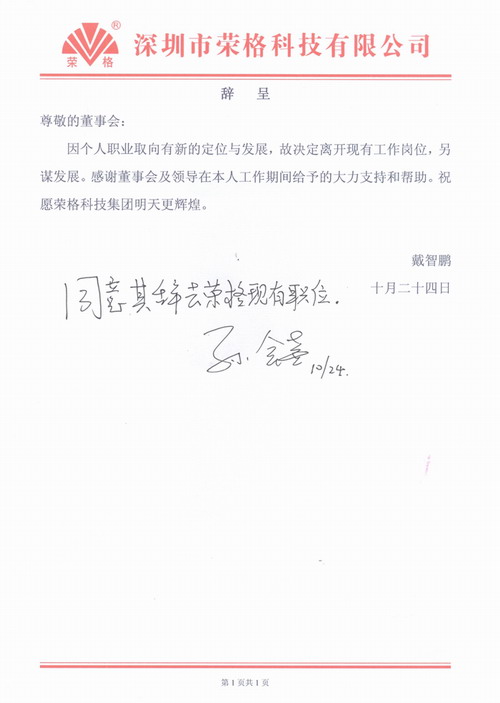 戴志鹏辞呈