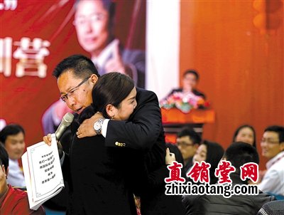 演讲课上,李阳与每一位参加课程的学员拥抱。